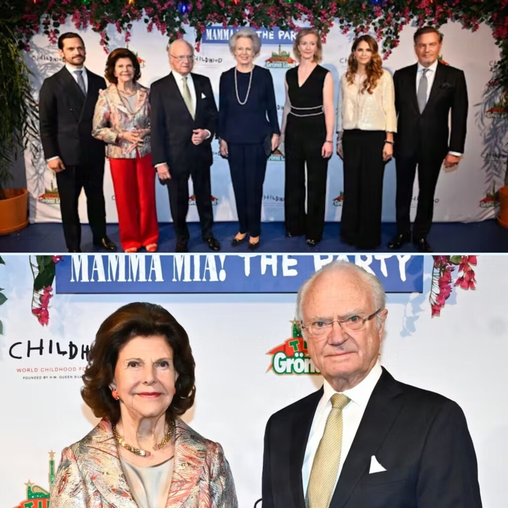 Der var dømt Mamma Mia-fest onsdag aften, hvor kong Carl Gustaf, dronning Silvia, prins Carl Philip, prinsesse Madeleine og Chris O’Neill sammen med kongens søster prinsesse Christina og hendes mand, Tord, overværede forestillingen ”Mamma Mia! The Party” til fordel for World Childhood Organisation.